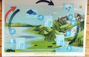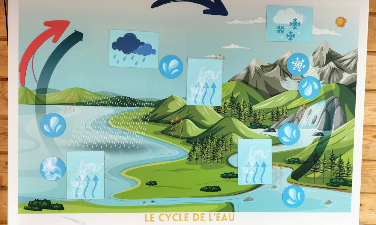 Savoir : L’animation permet de présenter l’eau sous ses différents états, de savoir où trouve t-on l’eau sur Terre, combien de temps reste t-elle dans les grands réservoirs d’eau terrestres, schématiser le circuit naturel de l’eau sur Terre.