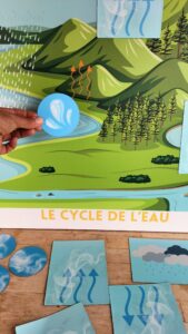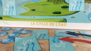 Découvrir l’élément eau, ses différents états: solides, liquides, gazeux. Connaître les lieux où on trouve l’eau sur Terre et comment elle circule. Pratiquer différentes expériences pour comprendre le fonctionnement du cycle de l’eau sur Terre.