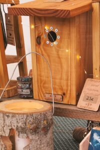 Fabrication en douglas, choisi pour sa résistance aux conditions d’expositions en extérieur.