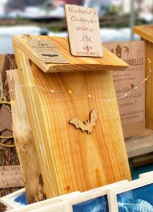 Abri pour les chauve-souris l’été. Elles viendront dormir pendant la journée avant d’aller manger les moustiques la nuit.